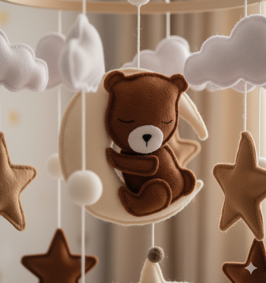 Mobile bébé “Ourson Céleste” en bois et coton naturel