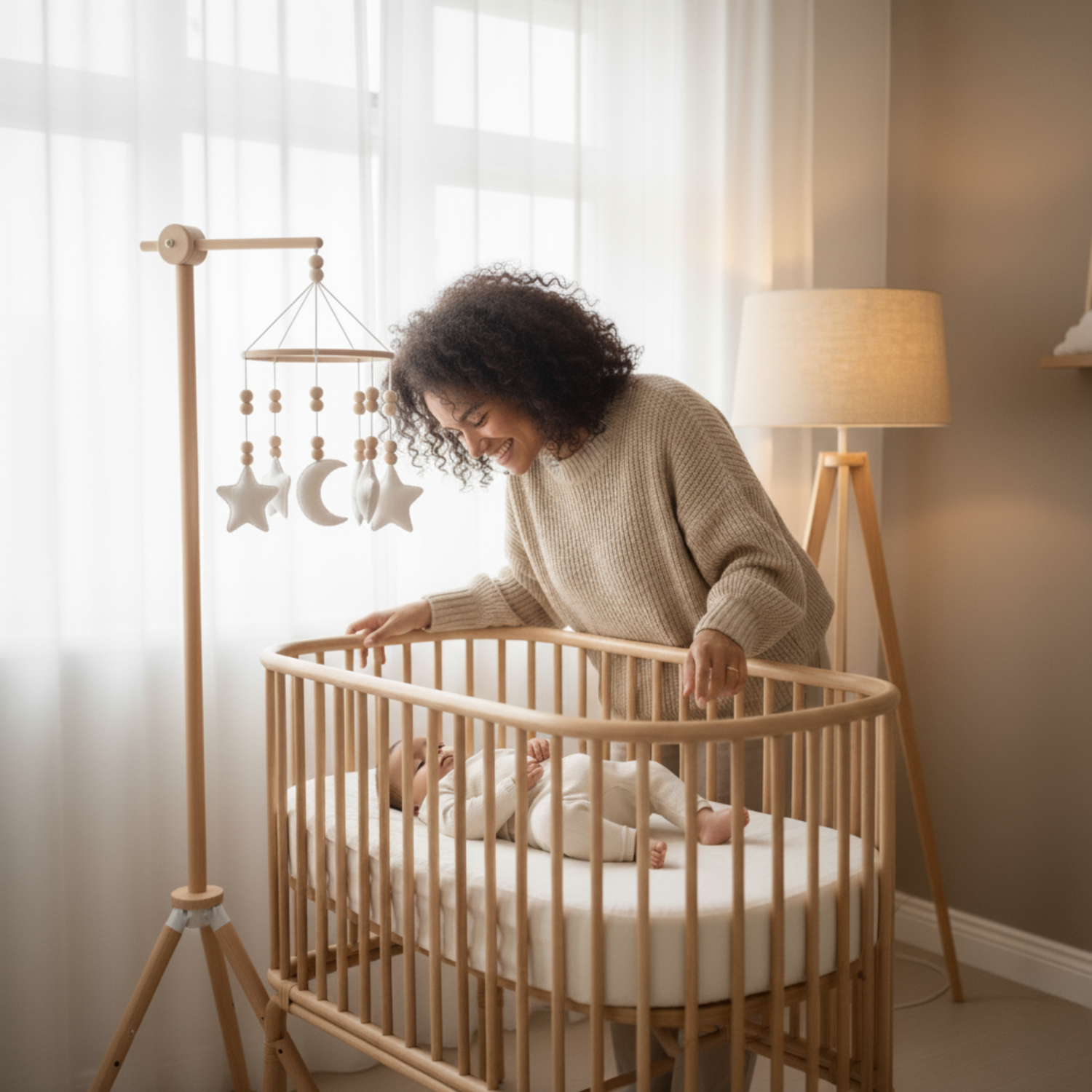 Nous souhaitons inspirer les parents, apaiser les bébés et transformer chaque chambre en un petit refuge — un lieu où l’on rêve, où l’on respire et où l’on s’aime.